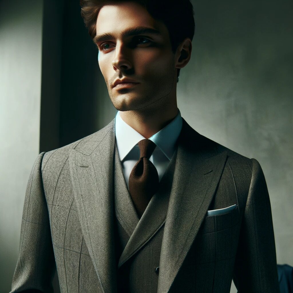 DALL·E 2024-01-17 10.50.17 – a man wearing an elegant suit with subtle distinctiveness. The suit should exhibit a balance between classic fashion and modern uniqueness, possibly t